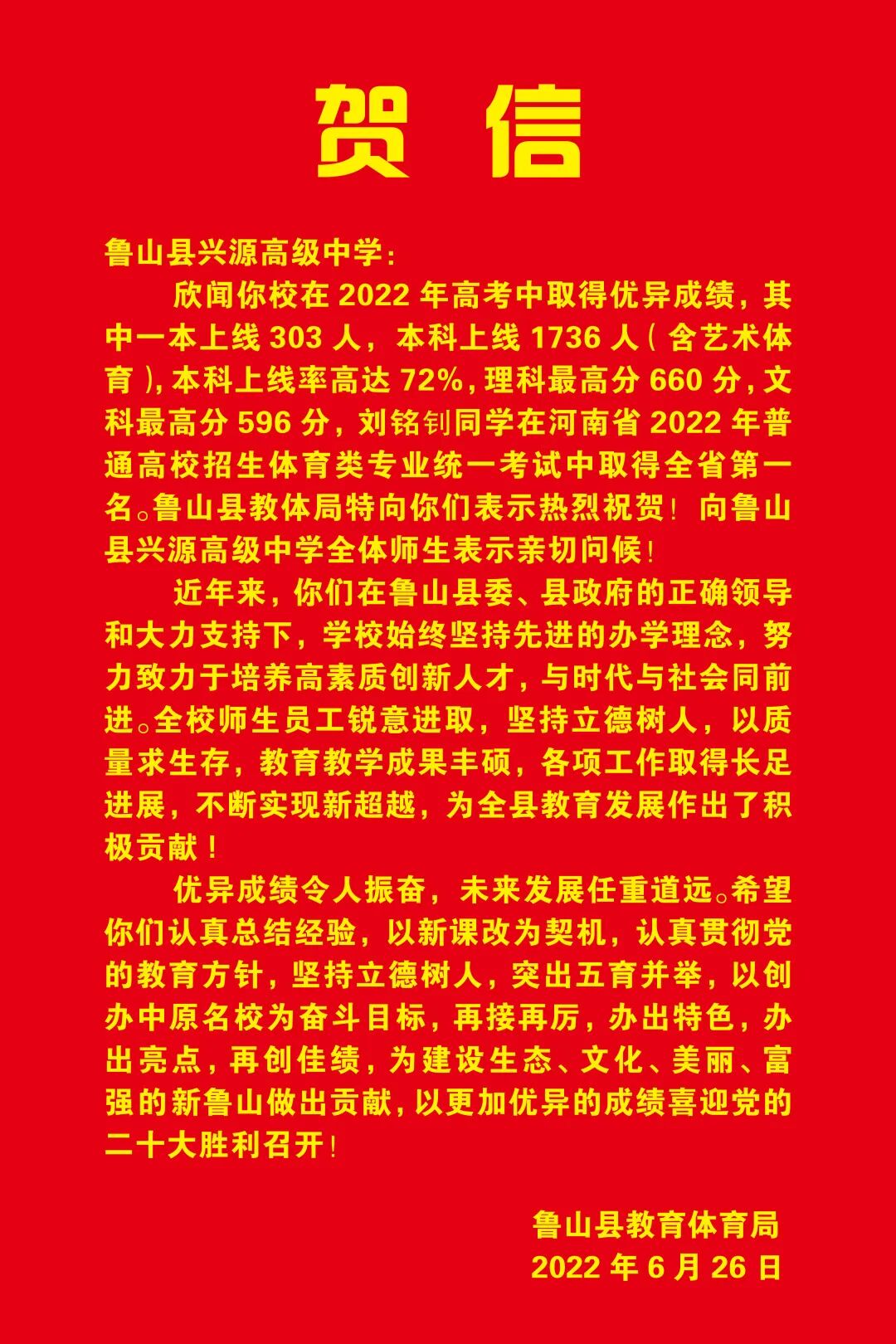教育局高考贺信