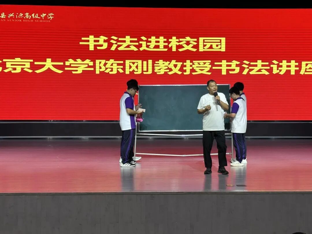 探索汉字之美,感受书法之魂。为弘扬优秀传统文化,提升同学们的书写水平和卷面质量,9月4日上午,北京大学书法艺术研究所研究员陈刚教授为兴源高中全体高一学生做了一场别开生面的书法专题讲座。
