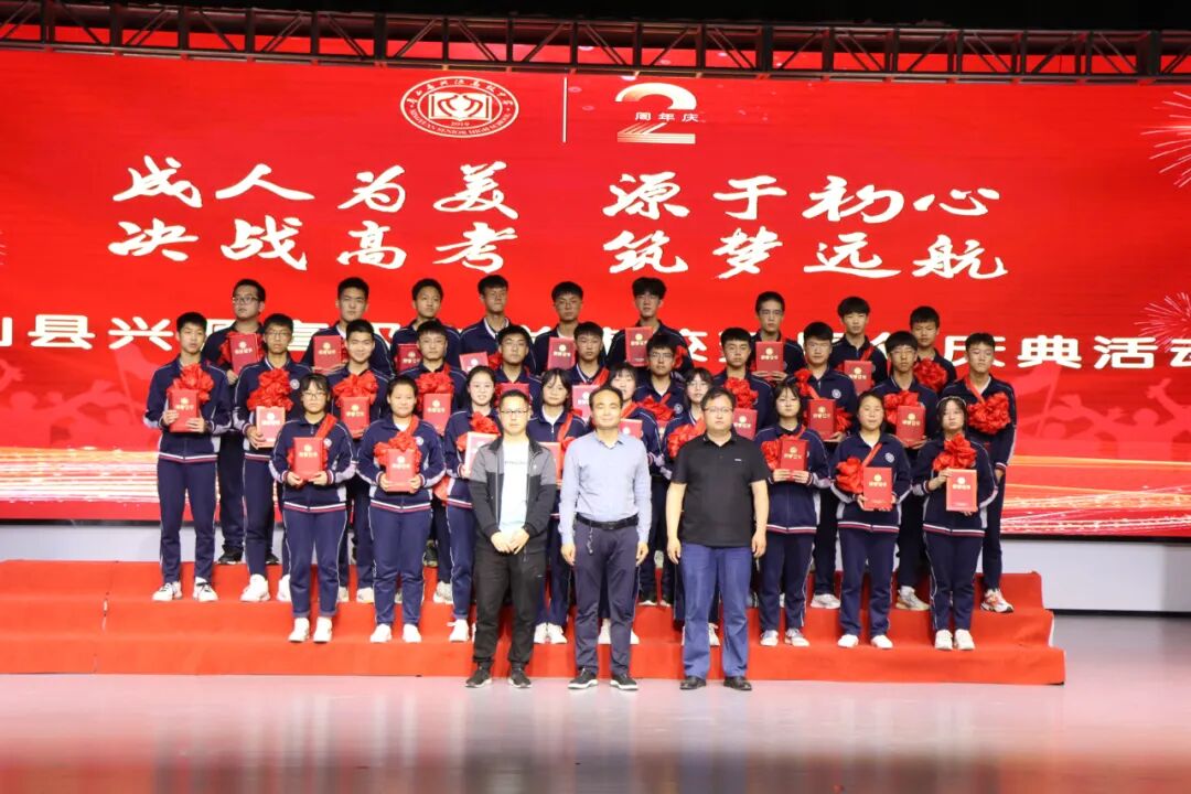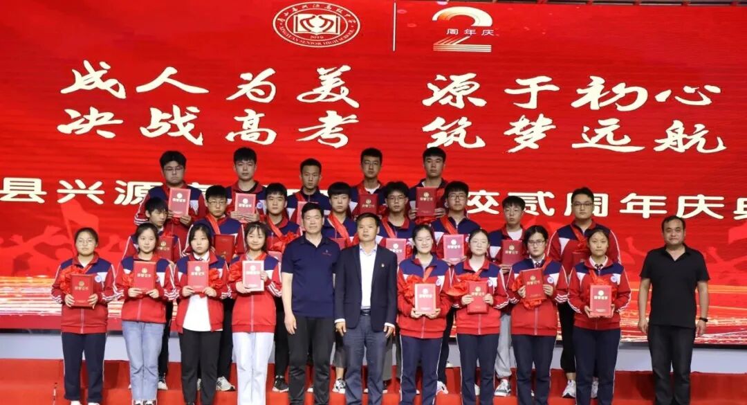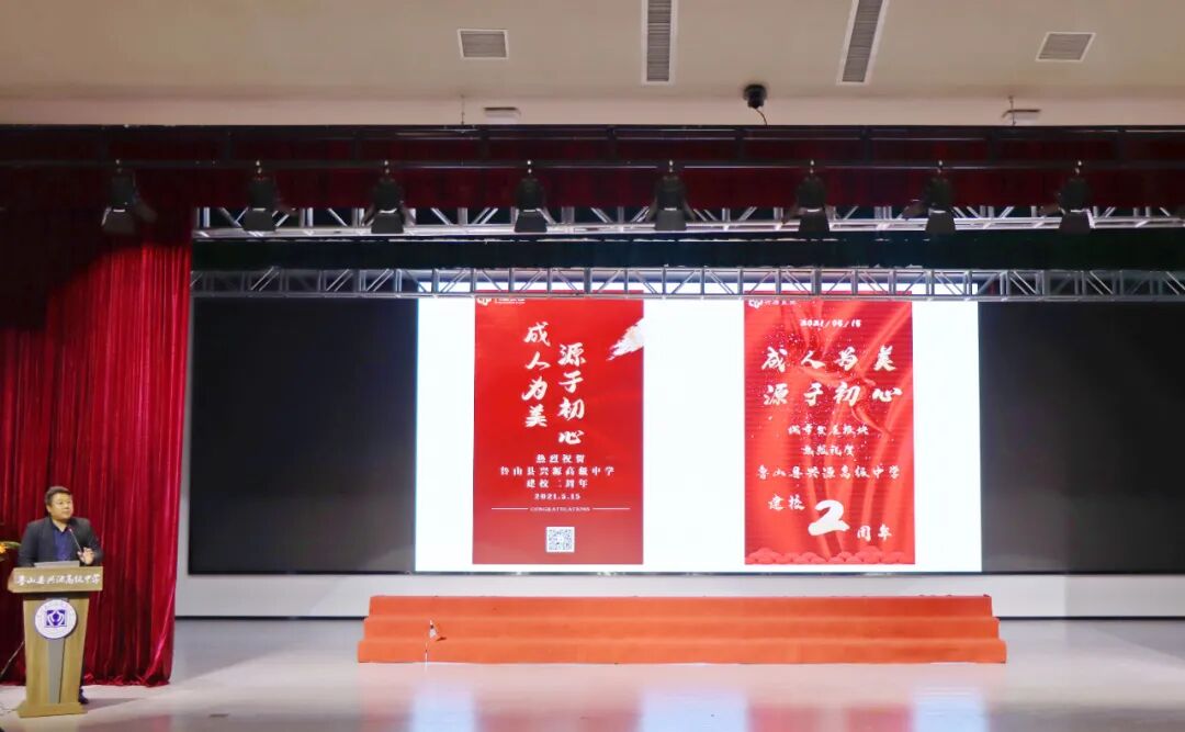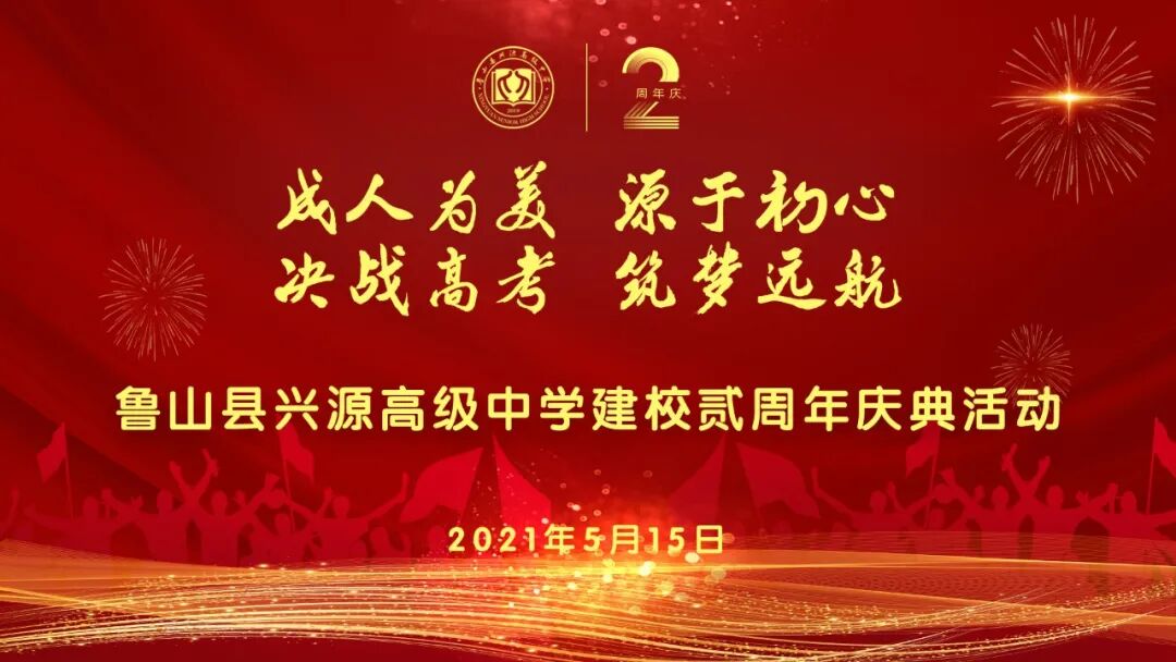 又是一年春归去,子实含笑照芳茵。2021年5月15日,兴源高中迎来了建校2周年,我校隆重举行了以“成人为美,源于初心,决战高考,筑梦远航”为主题的2周年庆典活动。兴源高中校长樊红伟、校委会成员及全体教师、学生家长代表参加活动。活动由综合办公室主任邵永鹏主持,本次活动采用现场+直播的方式共同进行。