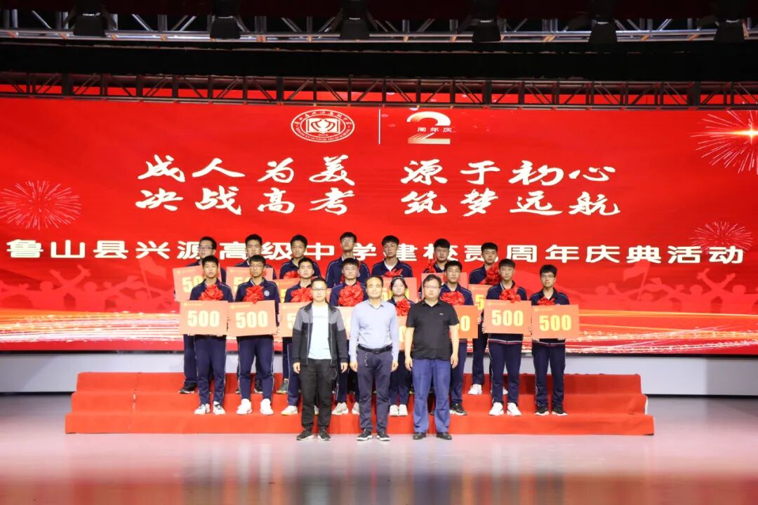 复读班年级主任侯永红、高二年级主任潘庆丰、高一年级主任李理想依次上台向全体家长做汇报,并对优秀教师、优秀学生进行表彰。在刚刚进行的高一、高二年级豫南九校联考中,我校再创佳绩:高一年级一本上线161人,二本上线1327人,同比增长319人;高二年级一本上线171人,二本上线1365人。本科上线人数突破1300人大关;上线率达75.3%,是全省平均水平的2.26倍。高三年级模拟一本人数突破150人大关。成绩的取得是兴源集团科学领导的结果,是鲁山一高示范引领的结果,也是各级领导和广大家长鼎力支持的结果,更是兴源高中校委会及全体师生团结奋斗、脚踏实地、埋头苦干的结果。感谢社会各界的鼎力支持,感谢您们惠赠贺辞,发来贺电、花篮、贺信,为此次庆典增添了无限的光彩和喜悦。