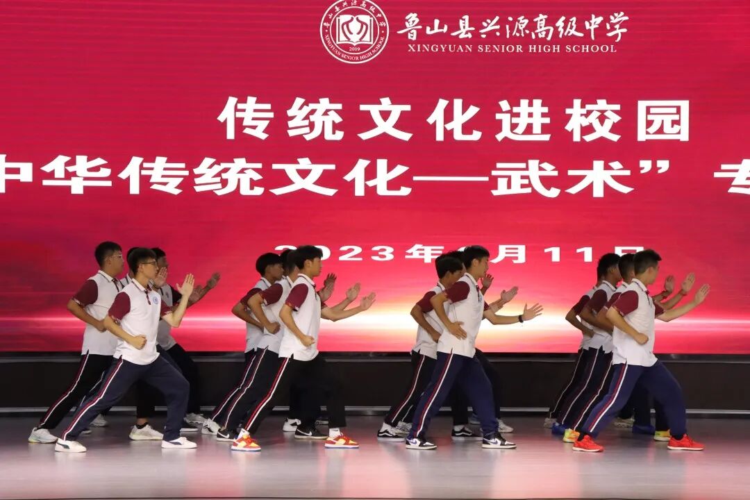 武术运动既可实现学生达到锻炼身体的目的,又能让学生明理修德,正于精神,净于灵魂,完善自我,成长为栋梁之材。兴源高中致力于坚持育人为本、德育为先,致力于培养:懂礼仪、讲诚信、善思考、敢实践、有特长,基础知识扎实、全面发展、有担当、敢于创新的社会主义建设者和合格接班人。“武术进校园”活动既是对传统文化传承方式的探索,同时也是广大青年学子了解与学习中国传统武术文化的重要渠道。通过此次活动,希望学生们能切身感受到了传统体育的智慧和魅力,在提升自身综合素质的同时,让传统体育运动发扬光大,让中华优秀传统文化滋润每个孩子的心灵。