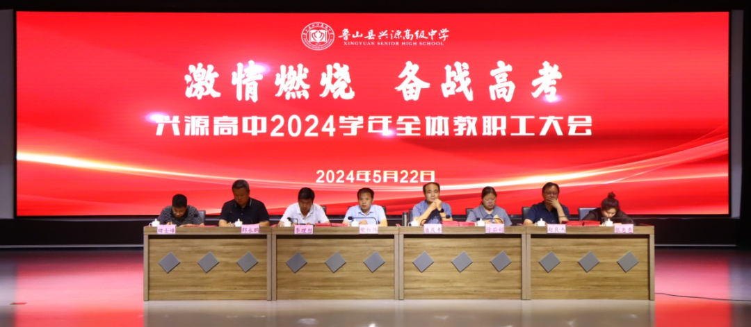 备战高考运筹帷幄,决胜六月众志成城。5月22日,距离高考16天,兴源高中召开以“激情燃烧 备战高考”为题的2024学年全体教职工大会。学校校领导及全体教职工共同参加会议,会议由综合办公室主任邵永鹏主持。