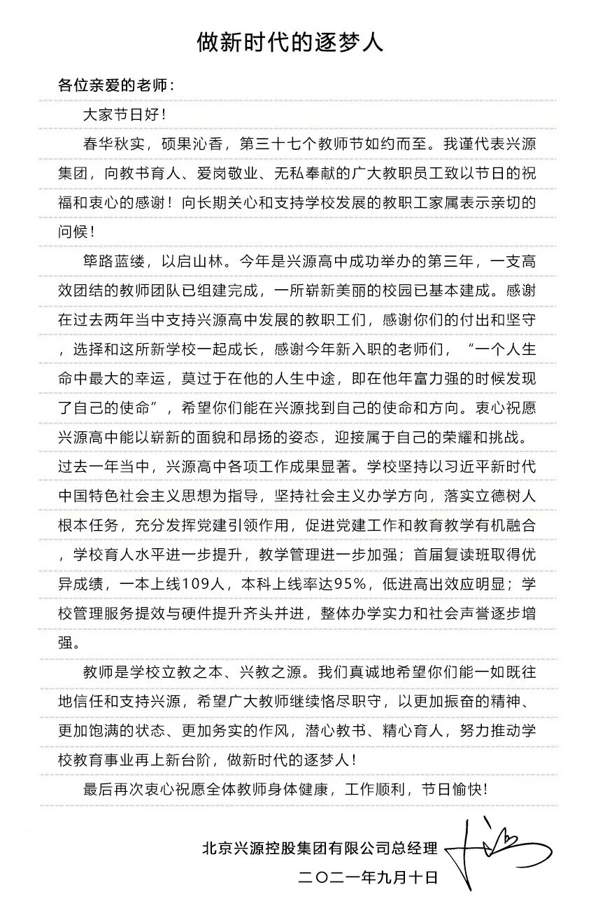 一封来自兴源集团的信