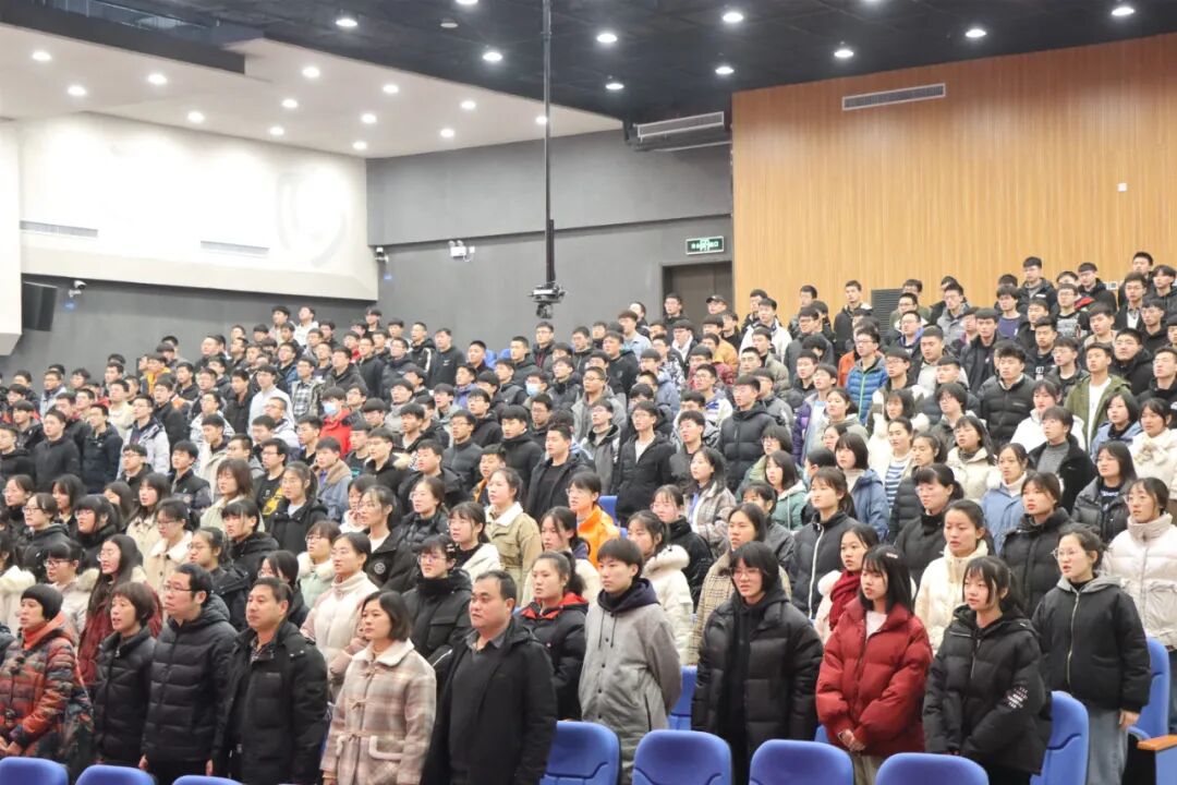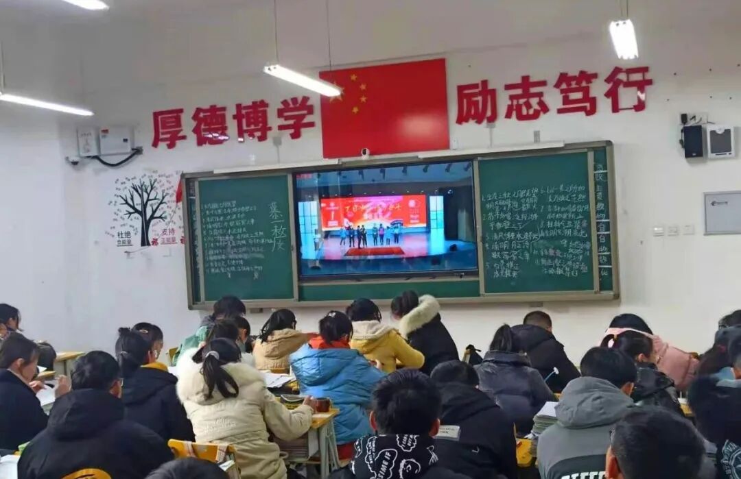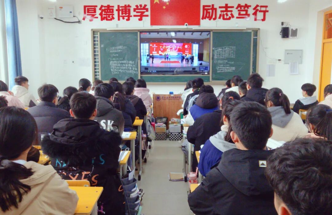 大会在庄严的国歌声中开始,高一、高二全体学生以视频直播的方式共同参加此次大会。