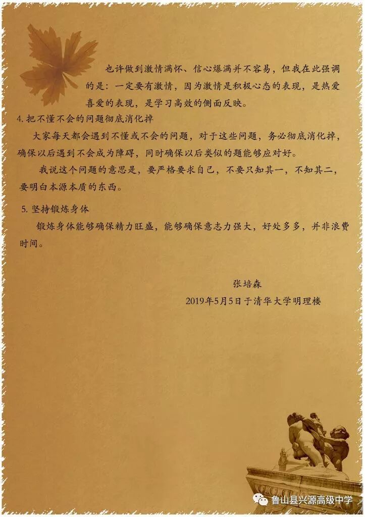 清华学子张培森给大家写的一封信