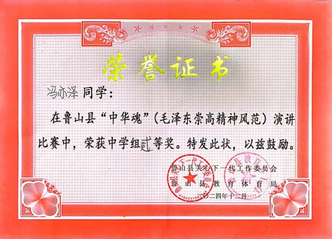 12月19日,鲁山县“中华魂”演讲比赛决赛圆满落幕,兴源学子高三年级冯亦泽同学、高二年级王静怡同学凭借出色表现荣获决赛二等奖,为学校争得荣誉。