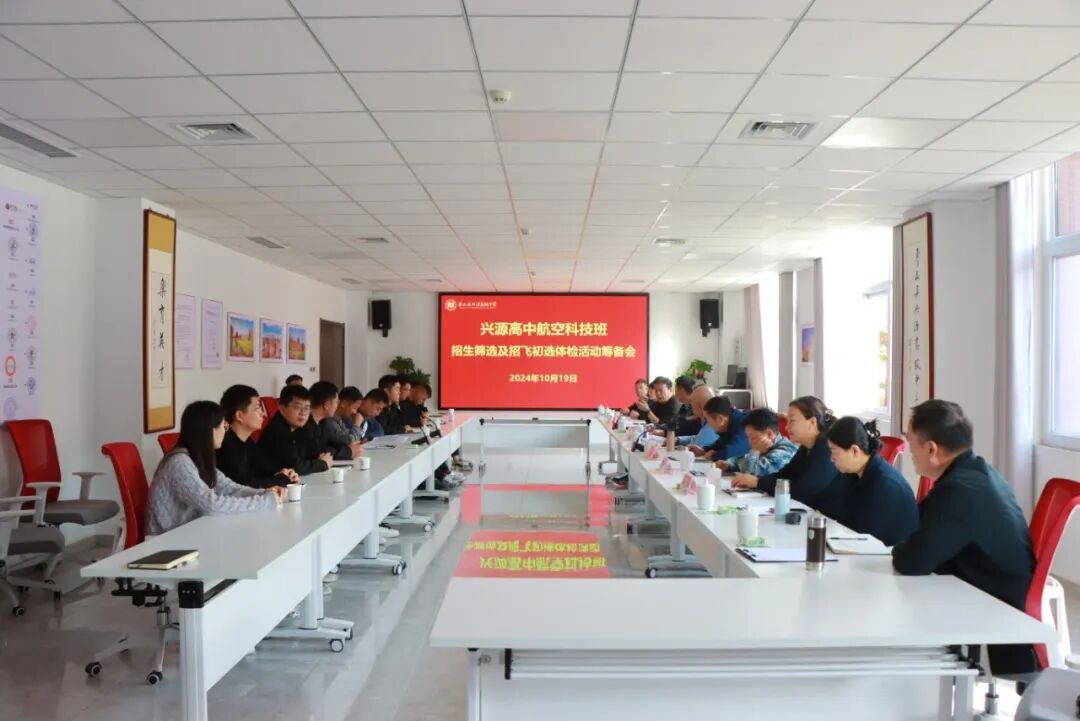 为高质量完成招飞体检工作,19日下午,北京助航者空天科普发展中心专家、招飞体检队专家与兴源高中招飞专干们齐聚一堂召开航空科技班招生筛选及招飞初选体检工作筹备会。会上按照招飞体检的具体要求,对体检流程、安全管理、服务保障等方面做了周密部署,确保学生以最佳状态参加体检。