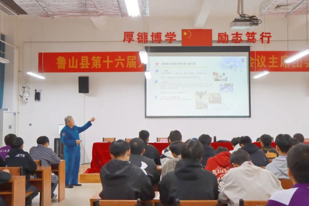 北京助航者空天科普发展中心主任、空军招飞局原副局长、中国航空学会科普委员张洁向高一同学们介绍了中国航空的发展史及民航、空军选拔的标准条件,针对“未来航空人计划项目”,张局长对航空科技班教学和专业课的相关安排进行了全面介绍,并对航空专业的特点、优势和就业前景进行了全方位的讲解,为同学们在高中阶段的学业生涯指明了方向。