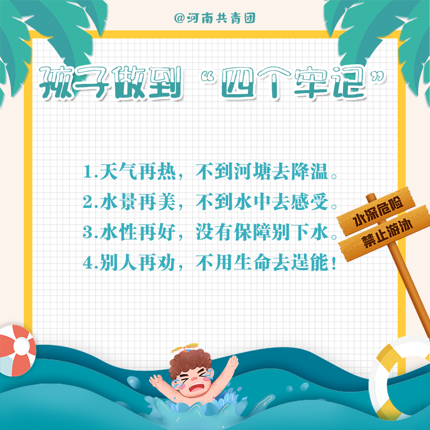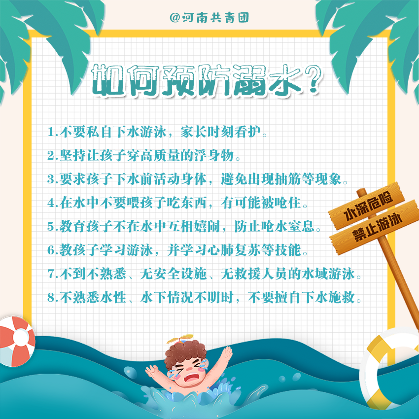警钟长鸣!预防溺水这些事情要记牢炎炎夏日,暑假到来青少年儿童溺水事故进入高发期每一起溺水身亡事故的发生都会给家庭带来巨大的精神伤害和无法弥补的损失所以我们一定要加强防范意识对孩子做好安全教育生命可贵,警钟长鸣希望大家能牢记这些防护知识一定要注意安全谨防溺水事故避免悲剧再度发生! 热点视频推荐 📹进入汛期这些防汛小知识不可不备▼▼▼END
