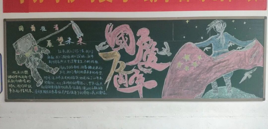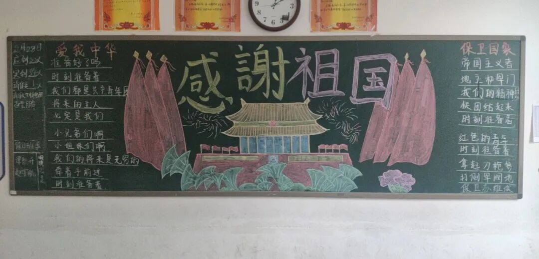 出色地绘制出了国庆献礼活动黑板报。