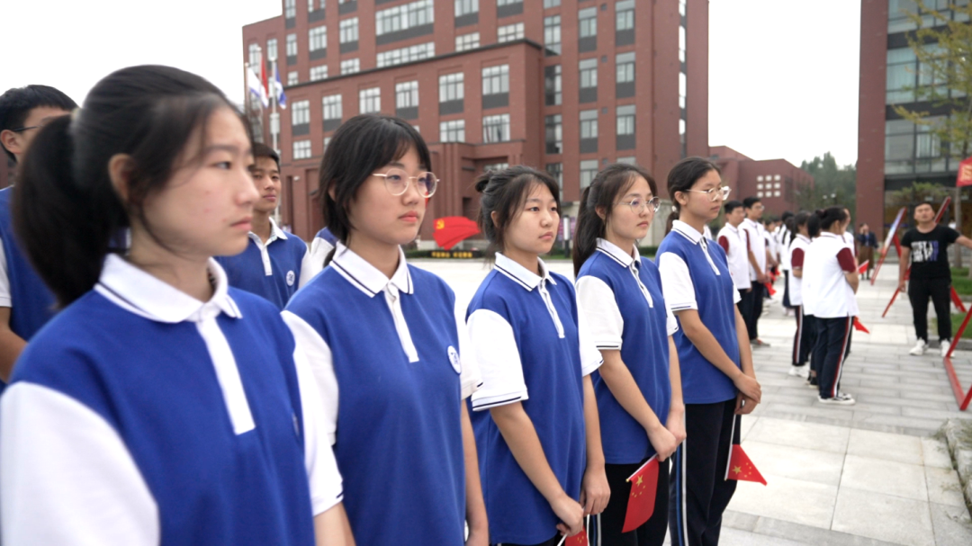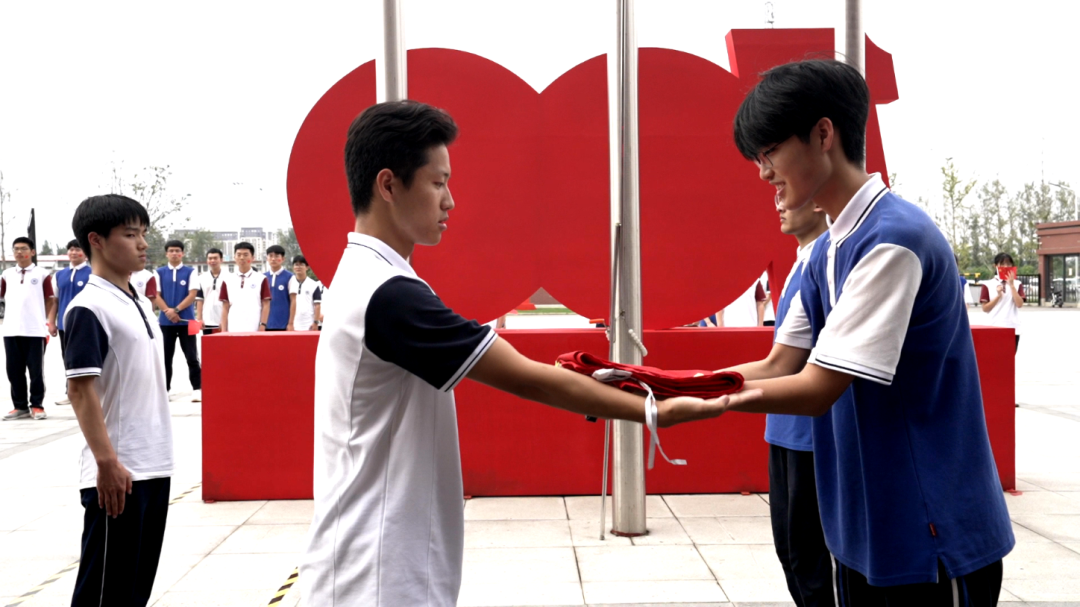 由高三国旗队将国旗交予高二国旗队,