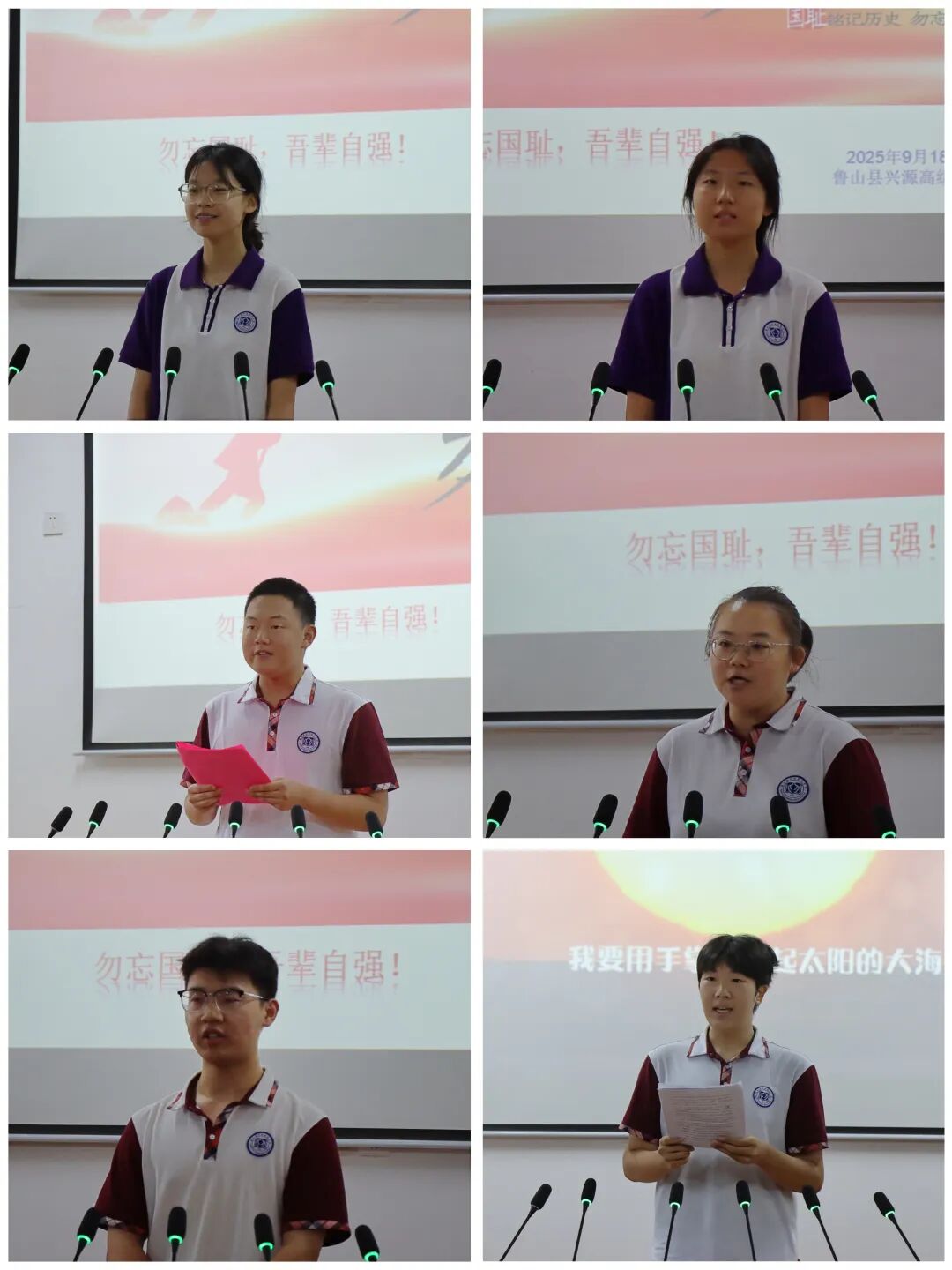 为缅怀革命先烈、传承红色基因,引导学生铭记历史、砥砺奋进,9月18日上午,兴源高中开展了纪念“九一八”主题演讲比赛。同学们紧扣主题,深情讲述“九一八”事变中的英雄事迹,回溯那段山河破碎的岁月,结合新时代青年使命,畅谈如何以实际行动传承爱国精神、勇担时代责任。兴源学子意气风发、言辞恳切,用真挚的情感和激昂的语言,让现场师生重温历史记忆,深刻感悟家国情怀。