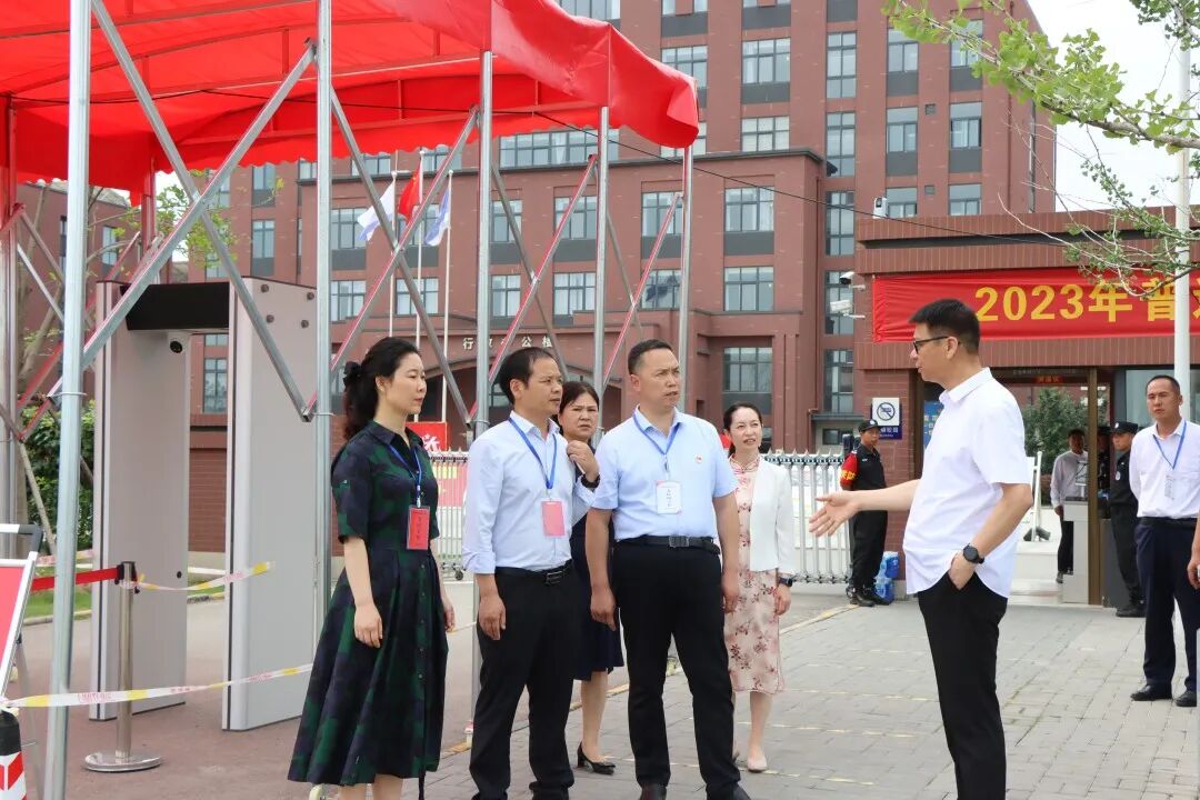 在高考监控室,叶县长通过视频监控系统查看了考场考试情况,看到各环节秩序井然、衔接顺畅,对我校考务工作给予充分肯定,他强调高考是全社会高度关注的一件大事,各相关部门责任重大,要一丝不苟、认真负责落实好各项措施,切实抓好考务工作;要通力合作,全力以赴抓好交通、卫生、安全等后勤保障工作,精心为考生营造安心舒适的考试环境,确保2023年高考工作顺利圆满完成,希望大家用心用情用力做好考生服务保障工作,为每一位考生营造轻松舒适的考试环境,努力让考生满意、让家长放心。