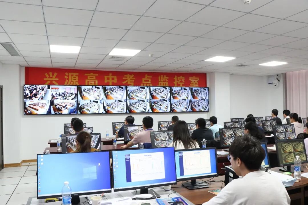 兴源高中校园内气氛宁静平和,考场外警戒严密。在不打扰考试的前提下,叶县长一行来到监控室、考务室等场所,详细了解了考点环境、考场布局、安检流程、人员力量配备、考场视频监控系统运行等情况。