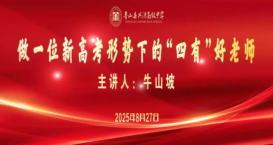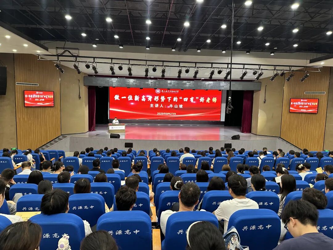 为助力全体教师以更优状态迎接新学期,精准把握新高考形势下的教育教学方向,全面提升育人水平。8月27日上午,兴源高中特邀请鲁山一高党委书记、校长牛山坡到校,开展主题为“做一位新高考形势下的‘四有’好老师”的专题讲座。兴源高中校领导及全体教师共同聆听了这场兼具深度与实践意义的教育盛宴。