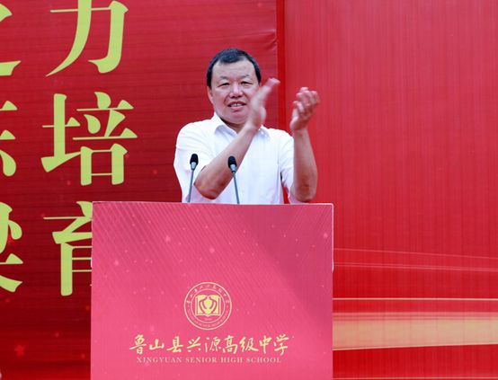 李会良县长作总结讲话,首先对兴源高中的落成开学表示祝贺,同时向广大教职工致以节日的问候,对兴源高中提出三点希望:
