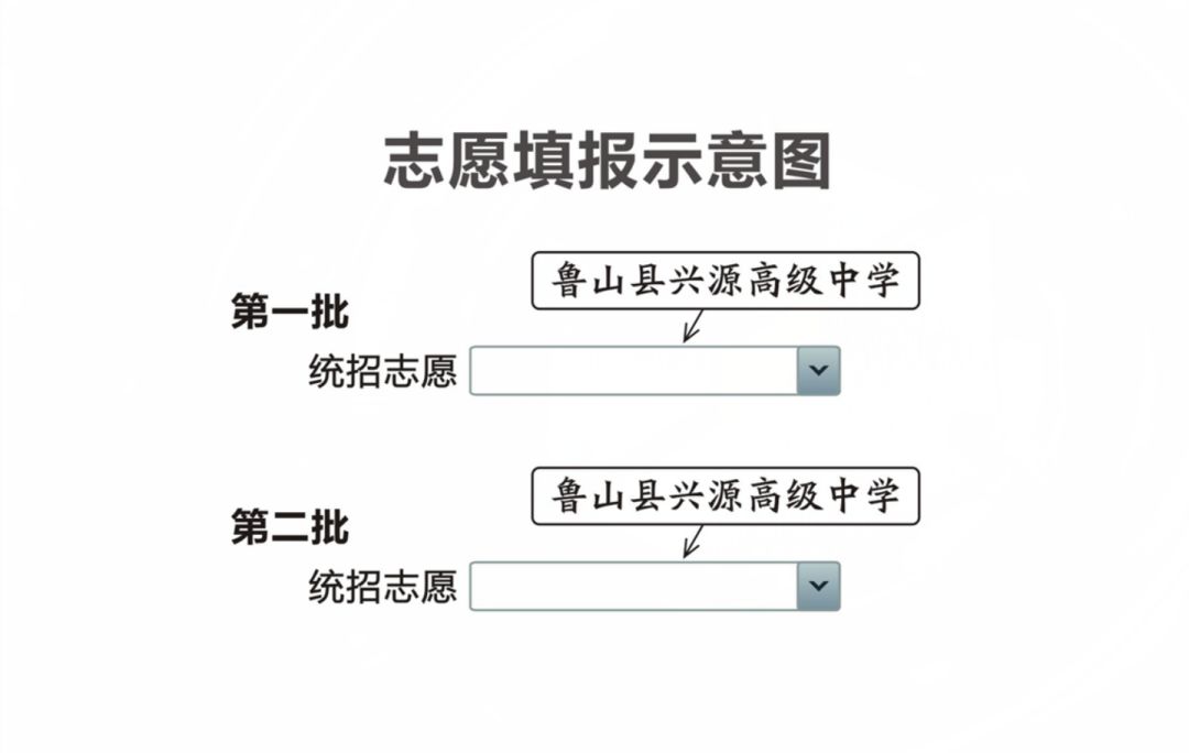 考生可在鲁山县第一批统招志愿填报“鲁山县兴源高级中学”,也可在第二批统招志愿填报“鲁山县兴源高级中学”。