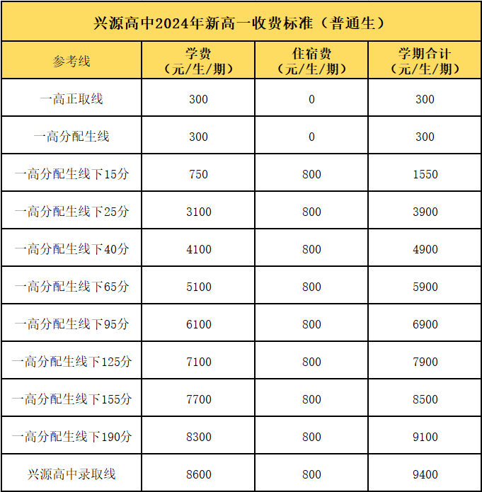 注:学费按期收费,三年不变。