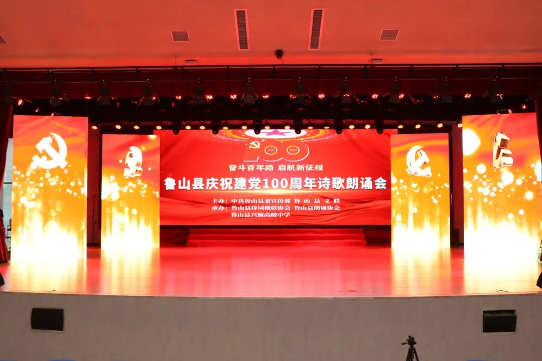 传承红色基因,致敬红色经典。在建党100周年来临之际,由中共鲁山县委宣传部、鲁山县文联主办;鲁山县诗词楹联协会、鲁山县朗诵协会、鲁山县兴源高中共同承办的“奋斗百年路·启航新征程”鲁山县庆祝建党100周年诗歌朗诵会在兴源高中举行。鲁山县政协副主席、县炎黄文化研究会会长邢春瑜,鲁山县重点项目领导小组副组长谷洪涛,县文联主席郭伟宁,兴源高中校长樊红伟等领导出席活动。