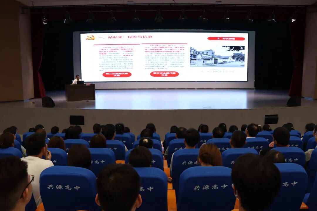 接着,牛主席从站起来、富起来、强起来这三个我国社会主义的发展阶段系统回顾了党的一大至十九大的重要历程、关键事件、核心人物和伟大成果。通过牛主席生动的讲解,让兴源高中全体师生从“四史”中,更加深刻认识中国共产党,如何领导全国人民根本扭转中华民族命运、实现三大飞跃、走向繁荣富强,激励师生承前启后,继往开来,凝聚学史明理、学史增信、学史崇德、学史力行的强大精神动力,为实现中华民族伟大复兴的中国梦贡献智慧和力量。