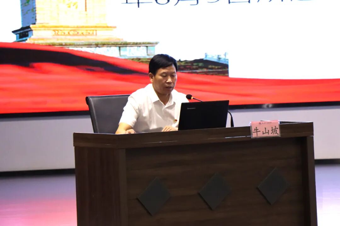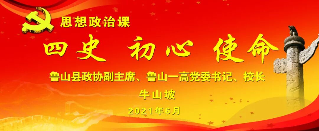 知史爱党、知史爱国。为深入贯彻习近平总书记关于学习“四史”的重要讲话和指示精神,6月21日,鲁山县政协副主席、鲁山一高党委书记、校长牛山坡按照县委和县委党史学习教育领导小组办公室安排,以“四史 初心 使命”为主题,在兴源高中为全校师生上了一堂别开生面的党史专题思政课。兴源高中党总支全体党员、四百位教职工、四千余名学生在学校学术报告厅及在线直播的形式,一起聆听。