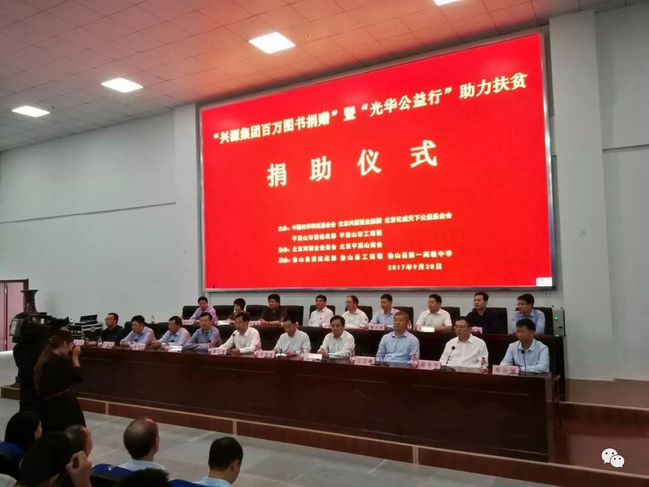 9月28日上午,“兴源集团百万图书捐赠”暨“光华公益行”助力扶贫捐助仪式在鲁山一高新校区举行。兴源集团通过旗下化成天下公益基金会向平顶山市6个县(市、区)捐赠100万元图书,用于支持教育事业发展。