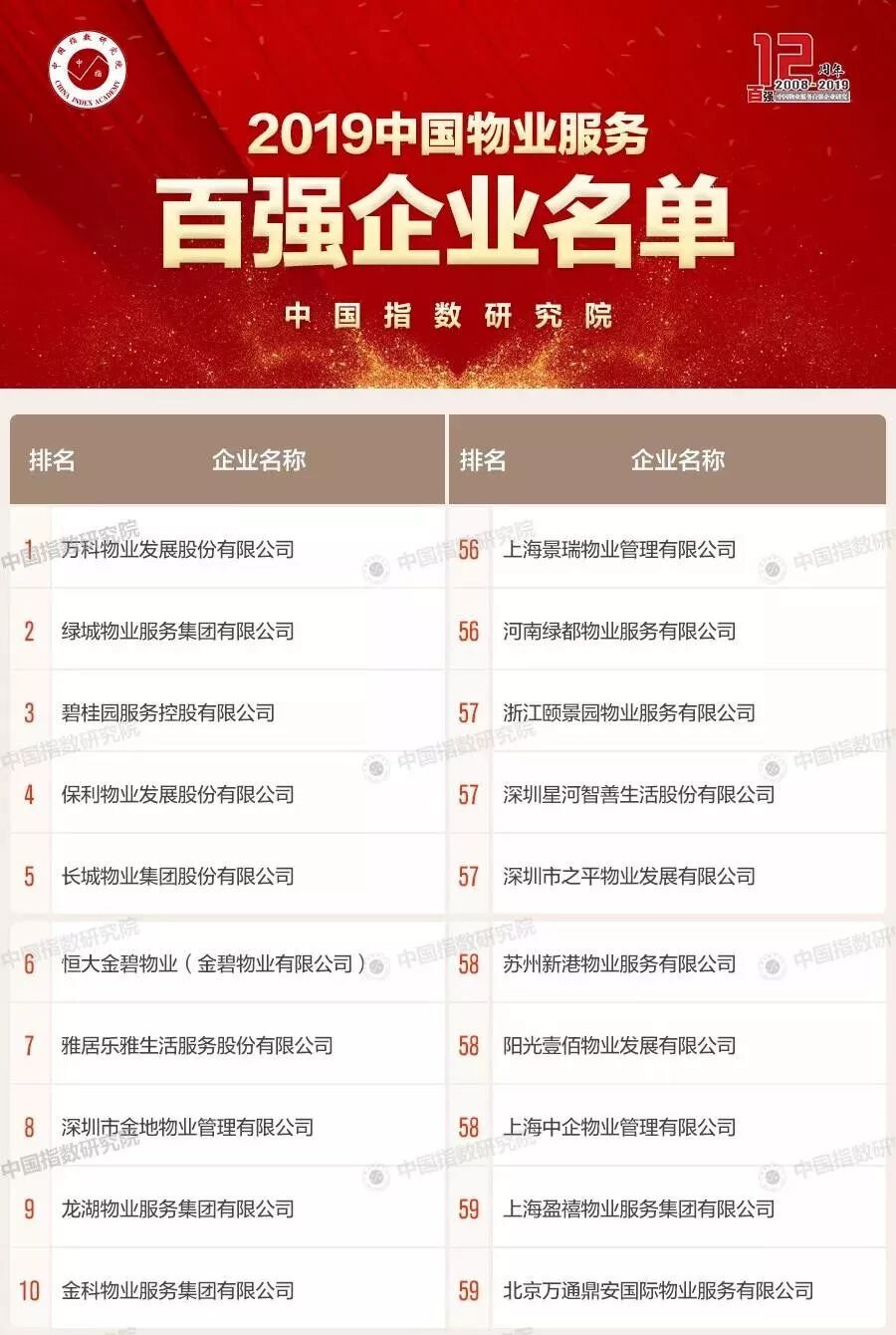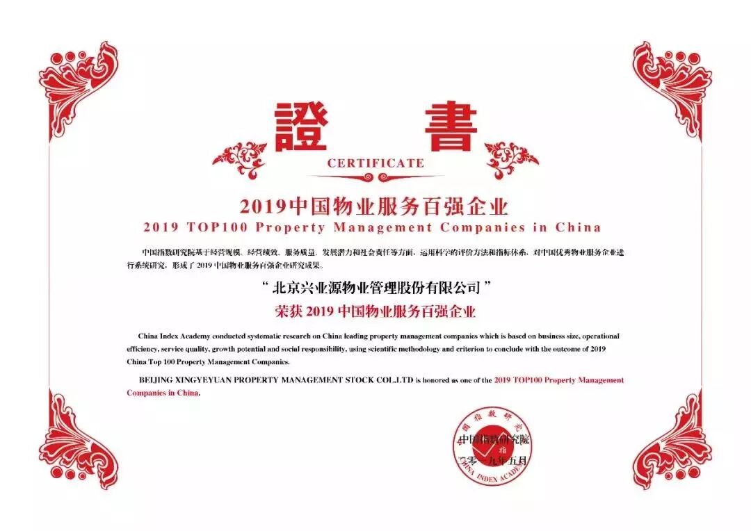 5月24日,中国指数研究院在北京隆重发布2019中国物业服务百强企业研究成果,发掘一批规模大、实力强、服务品质高的物业服务企业,发挥示范带头作用,引领行业健康、快速发展。