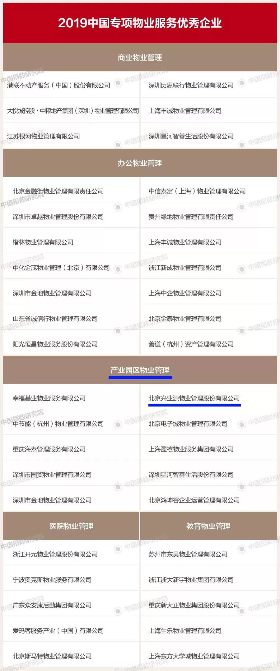 北京兴业源物业管理股份有限公司荣登物业百强企业,最终排名第65位。兴业源物业自成立以来,一直秉持创业的初心 , 在激烈的行业竞争中不断开疆拓土,并且逐步明晰了自己的市场定位。努力提升服务品质 , 并不断对设备进行技术升级 , 全心全意为客户提供更舒适的生活和工作环境,提供日益便捷和贴心的服务。 兴业源物业在市场的大潮中激流勇进 , 上下求索 , 整合兴业源数千名员工集体的智慧,不断为客户和业主们提升生活的幸福感。