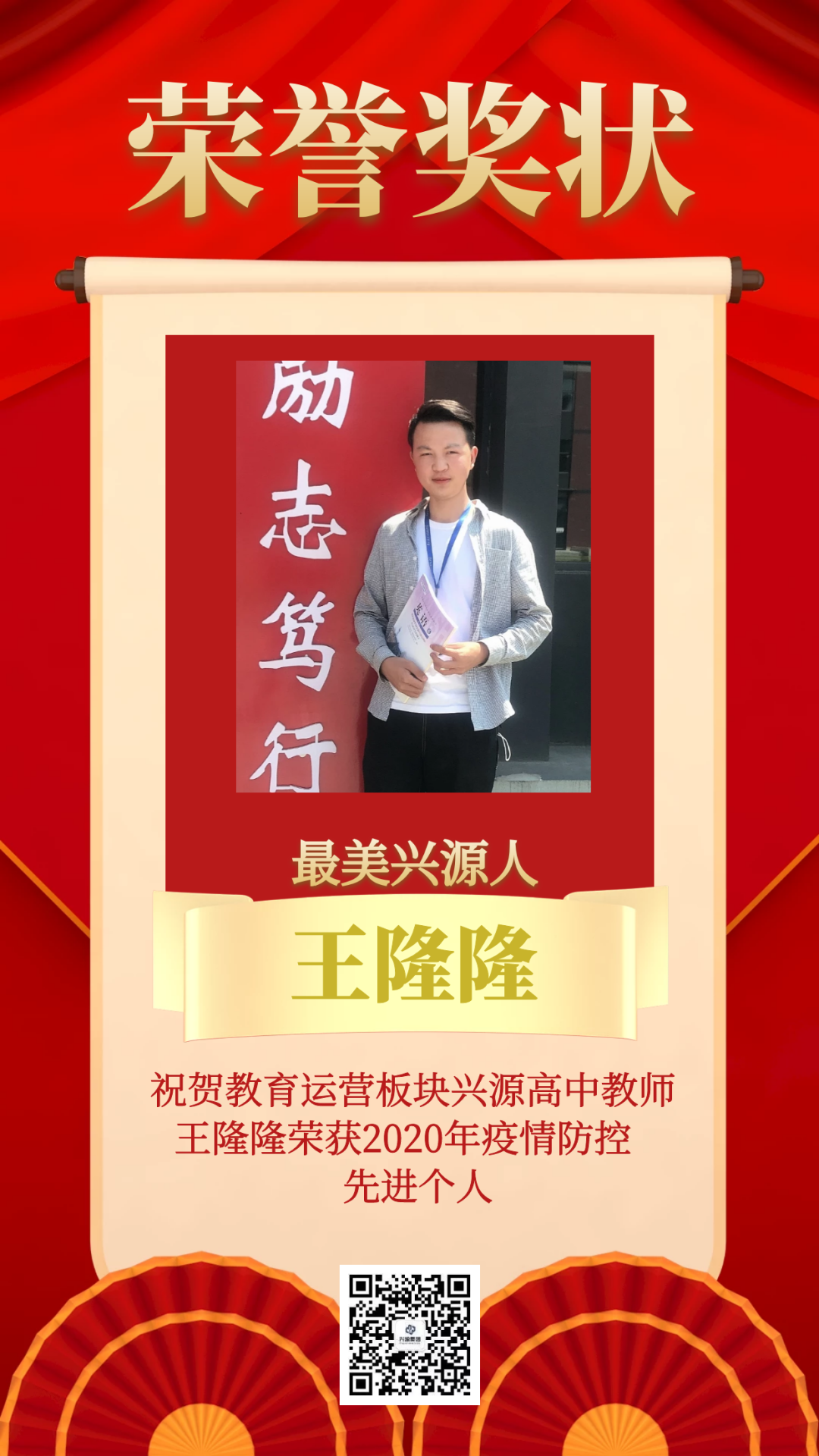 在疫情形势下,他被迫将课堂搬回到家里,严格执行“停课不停学,停课不停教”,保证每位学生不掉队,并与各位任课老师及时沟通,改进教育教学模式,不断提升课堂效率;作为政治组备课组长,时刻秉承“厚德博学,励志笃行”的校训,带领团队严谨把关备课进度,认真打磨精品课程,切实做到让领导放心,让家长满意。