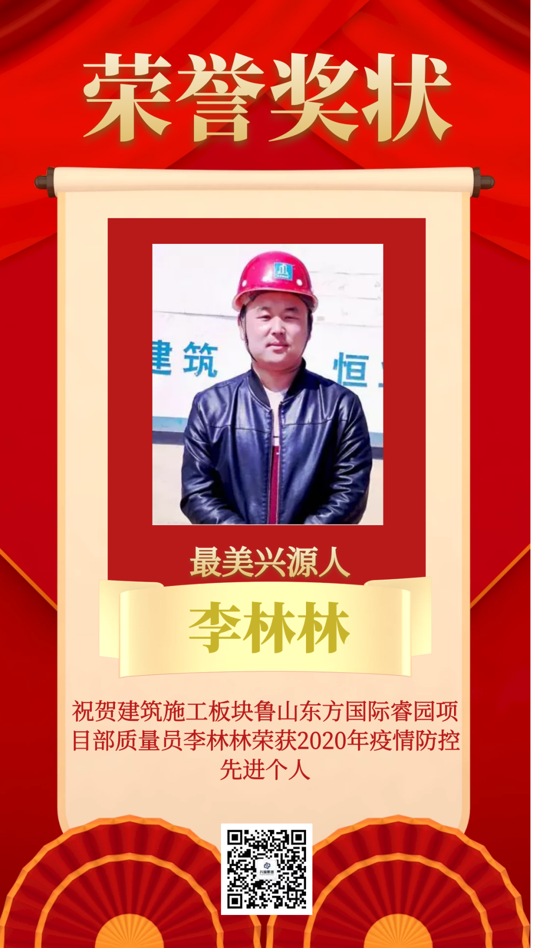 疫情来临,他不顾家人反对,第一时间赶到了当时疫情较重的鲁山县,在按照公司防控要求,自觉做好自我防护工作的前提下,开始投入到学校建设工程复工的准备工作。疫情期间,他认真履行工作职责,放弃休假,严把施工质量与时间节点关,积极提出优化施工方案建议,受到了公司领导和同事们的一致好评。