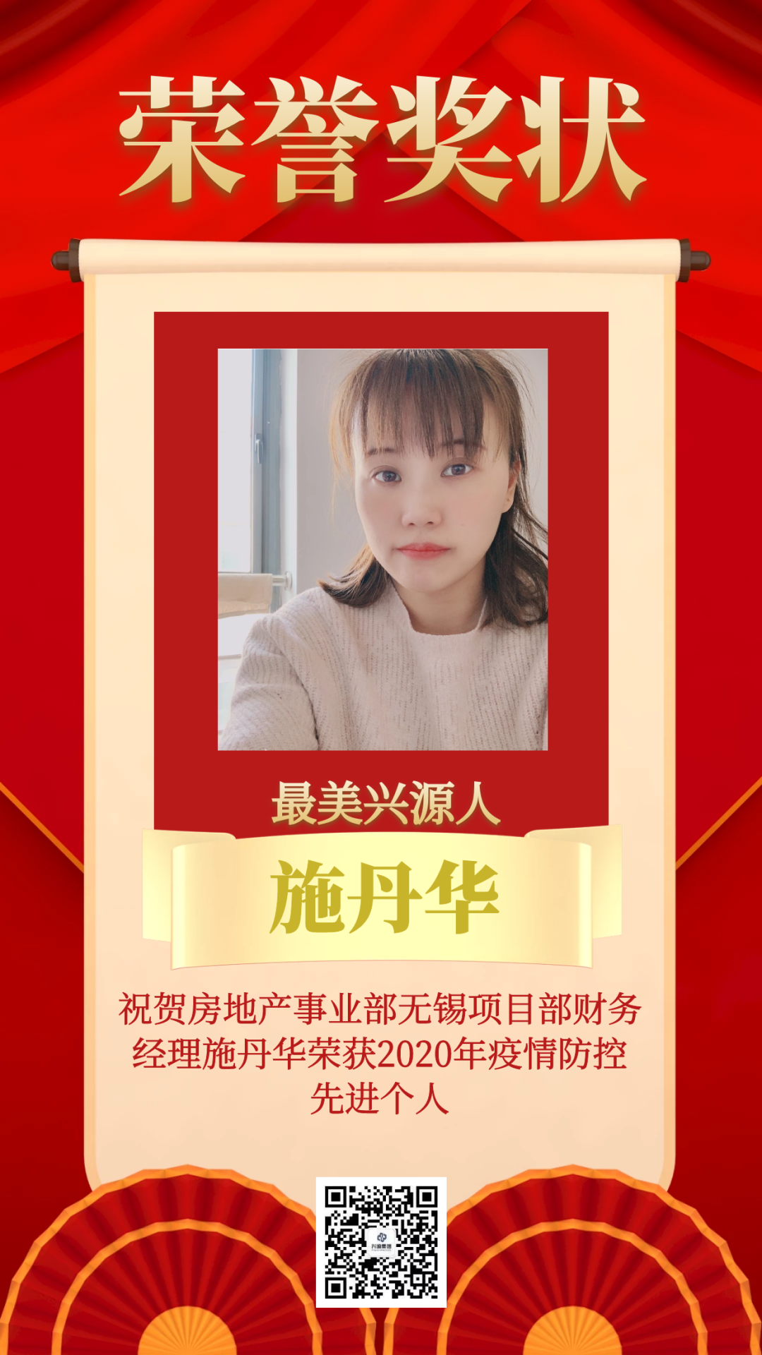 她面对疫情不怕艰难、敢于担当、“逆向而行”不仅做好本职的财务管理工作,她还是无锡项目部的“暖心管家”,项目复工后,她第一时间运送物资到公司,布置场地,筹划需求物资,并主动开始公司的消毒工作,为复工做出突出贡献,保证了无锡项目在2月24日顺利的开工。