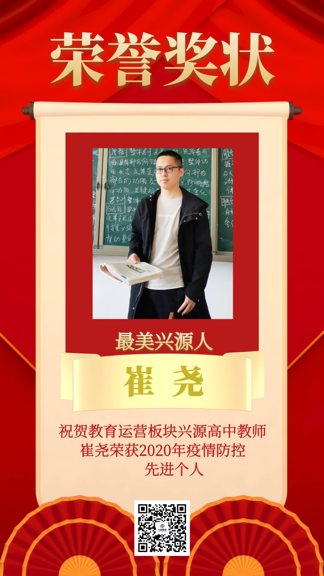面对疫情的严峻形势,他迅速响应集团和学校的安排,坚守在学校抗疫一线,团结学校全体教职工将防控工作落到实处,切实守护校园安全。他积极组织学生管理,开展德育管理,高效组织线上教学,带领学生积极进取,用实际行动履行坚守与担当。