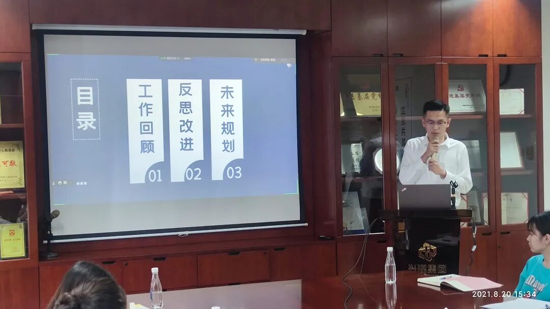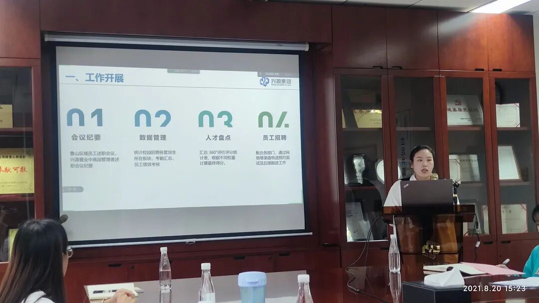 兴源集团2021级集团管培生分别就阶段性工作总结、优势与不足、工作感悟及未来职业规划做了重点汇报。