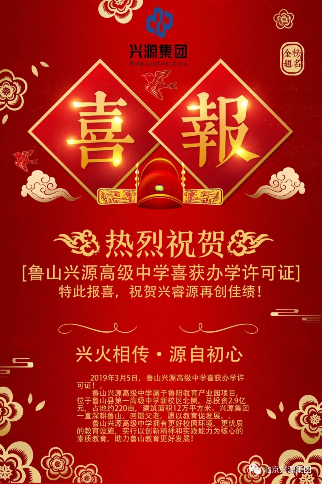 喜报:兴源集团旗下鲁山高级中学喜获办学许可证!