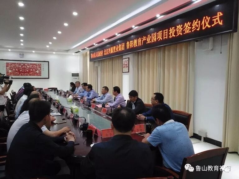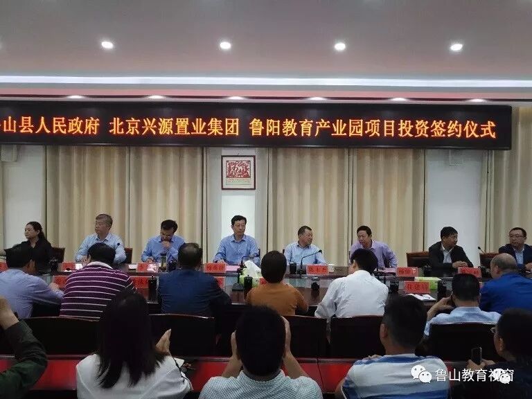 2018年5月8日, “鲁阳教育产业园”项目签约仪式在鲁山县文化中心隆重举行。北京兴源置业集团董事长陈永杰,北京兴源置业集团总经理庞宏垣,北京兴源置业集团董事、河南怡业源房地产开发有限公司董事长杨留长,北京化成天下公益基金会理事长陈宝峰,鲁山县委、县政府各级领导,县有关局委负责同志共同出席了签约仪式。集团总经理庞宏垣代表北京兴源置业集团与鲁山县人民政府共同签署了“鲁阳教育产业园”项目投资协议书。项目的成功签约,标志着兴源集团在鲁山的教育产业拉开了全新的序幕。