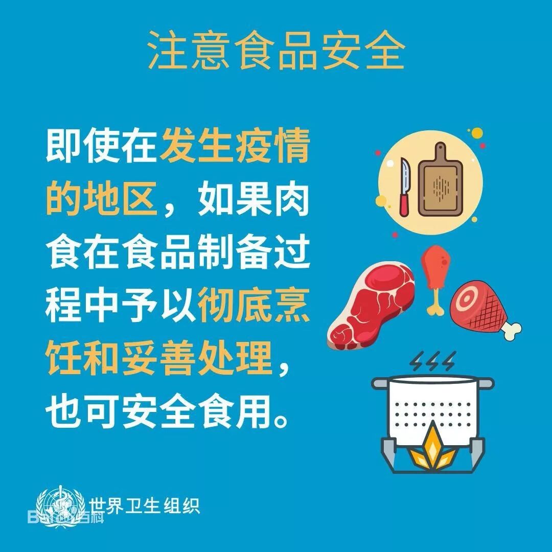 3.避免食用野生动物。不要食用已经患病的动物及其制品;要从正规渠道购买冰鲜禽肉,食用禽肉蛋奶时要充分煮熟,处理生鲜制品时,器具要生熟分开并及时清洗,避免交叉污染。