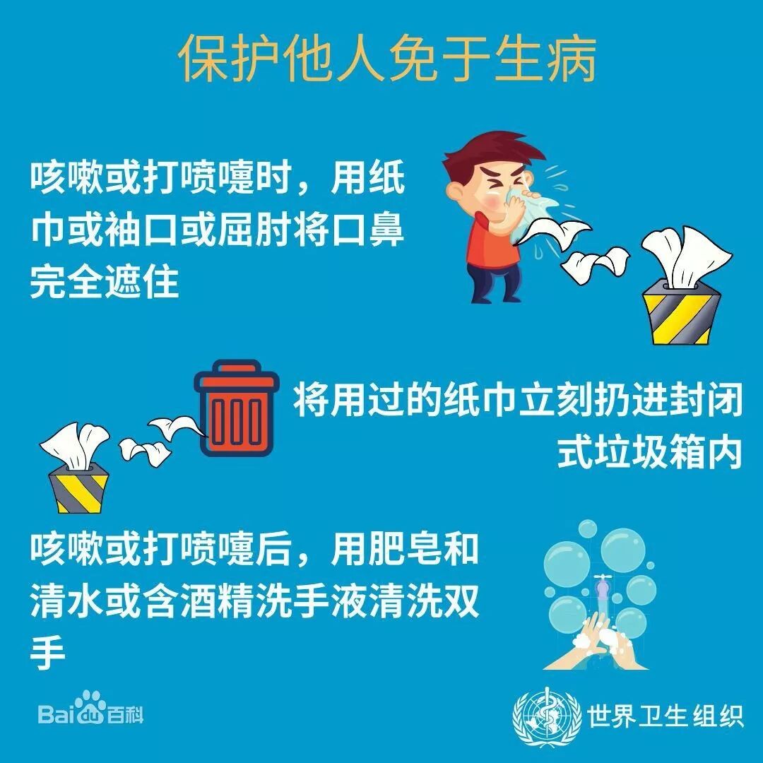 3.不要随地吐痰。打喷嚏或咳嗽时用纸巾或袖肘遮住口、鼻。