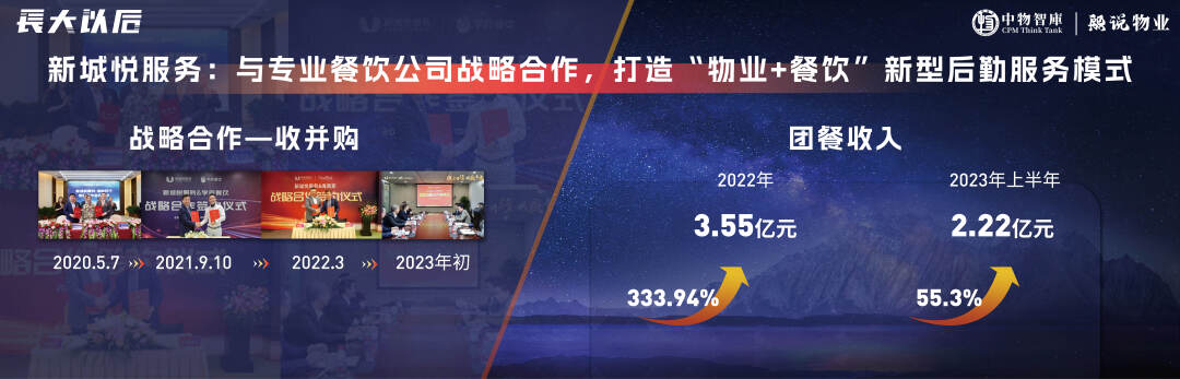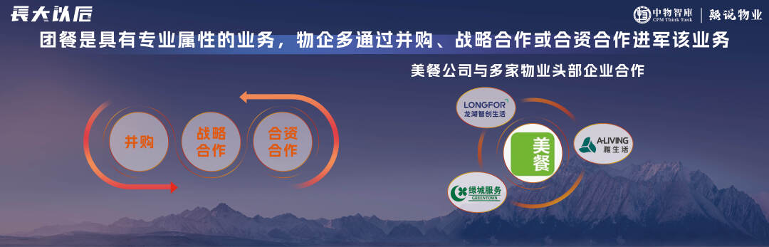 在资本市场和自有现金流的加持下,物业公司有机会切入一些属性接近的广阔赛道,比如城市服务、FM设施管理、团餐等等。