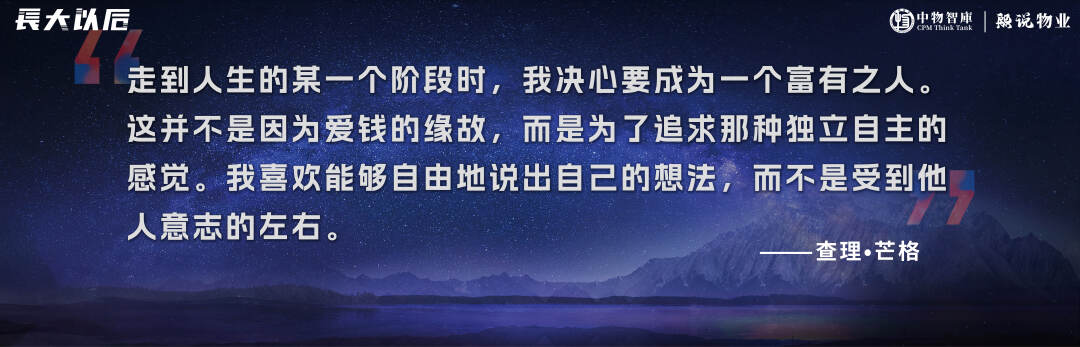 巴菲特的搭档查理·芒格有句话是这样说的:走到人生的某一个阶段时,我决心要成为一个富有之人。这并不是因为爱钱的缘故,而是为了追求那种独立自主的感觉。我喜欢能够自由地说出自己的想法,而不是受到他人意志的左右。