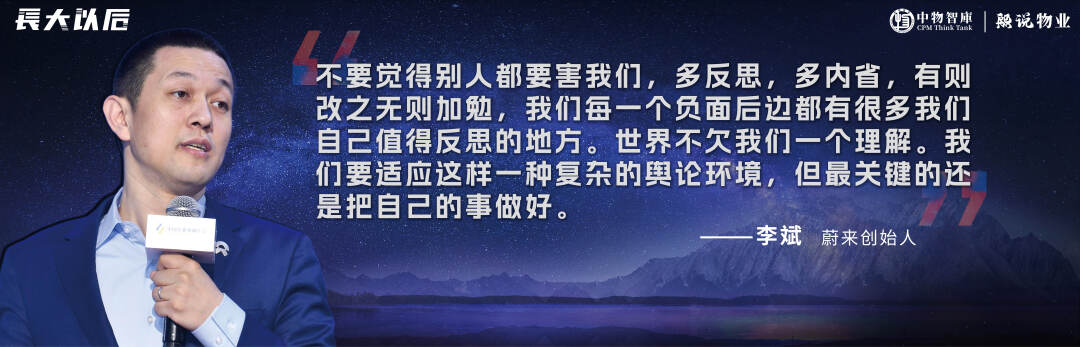 蔚来创始人李斌说:不要觉得别人都要害我们,多反思,多内省,有则改之无则加勉,我们每一个负面后边都有很多我们自己值得反思的地方。世界不欠我们一个理解。我们要适应这样一种复杂的舆论环境,但最关键的还是把自己的事做好。