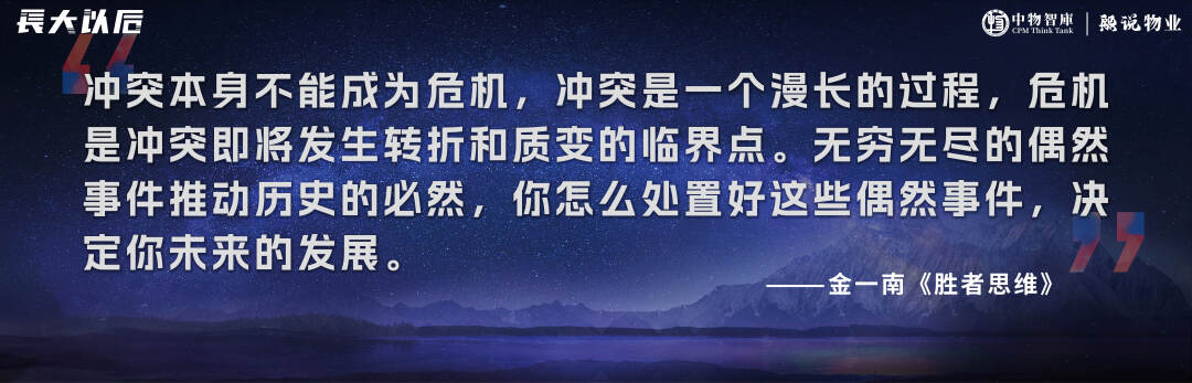 金一南在《胜者思维》一书中说到:冲突本身不能成为危机,冲突是一个漫长的过程,危机是冲突即将发生转折和质变的临界点。无穷无尽的偶然事件推动历史的必然,你怎么处置好这些偶然事件,决定你未来的发展。