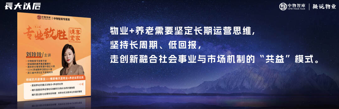 养老服务属于微利行业,利润空间较小。发展“物业+养老”服务,首要难题是企业营利性与养老服务公益性的矛盾。今年6月,绿城椿龄康养集团董事长刘玲玲,在做客中物智库专家讲堂时分享,“物业+养老”需要坚定长期运营思维,坚持长周期、低回报,走创新融合社会事业与市场机制的“共益”模式。