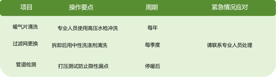 停暖后,整个供热系统的温度降低,暖气各接口、阀门处可能会因热胀冷缩发生轻微渗水现象。因此,建议停热后仔细检查各接口处是否漏水。如果有轻微渗漏,可以系上一条毛巾把水吸走,短期内不会殃及地板及墙壁。如果漏水严重,尽快联系专业人员维修处理。