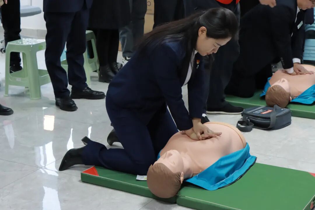 兴业源服务将心肺复苏术与 AED 设备操作纳入必修课程体系,构建标准化、可复制的急救培训模式,我们建立“双轨认证 + 动态考评”机制,指定岗位人员须通过红十字专业认证CPR机构与企业内部的双重考核后方可履职。同时,我们还建立了培训孵化机制,持续孵化 CPR 紧急培训讲师团队,为项目的深入推进提供坚实的人才支撑。