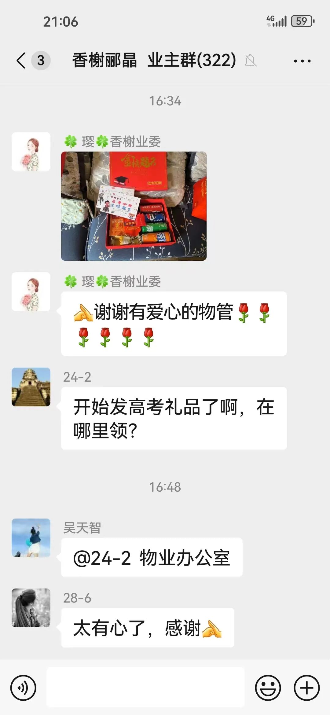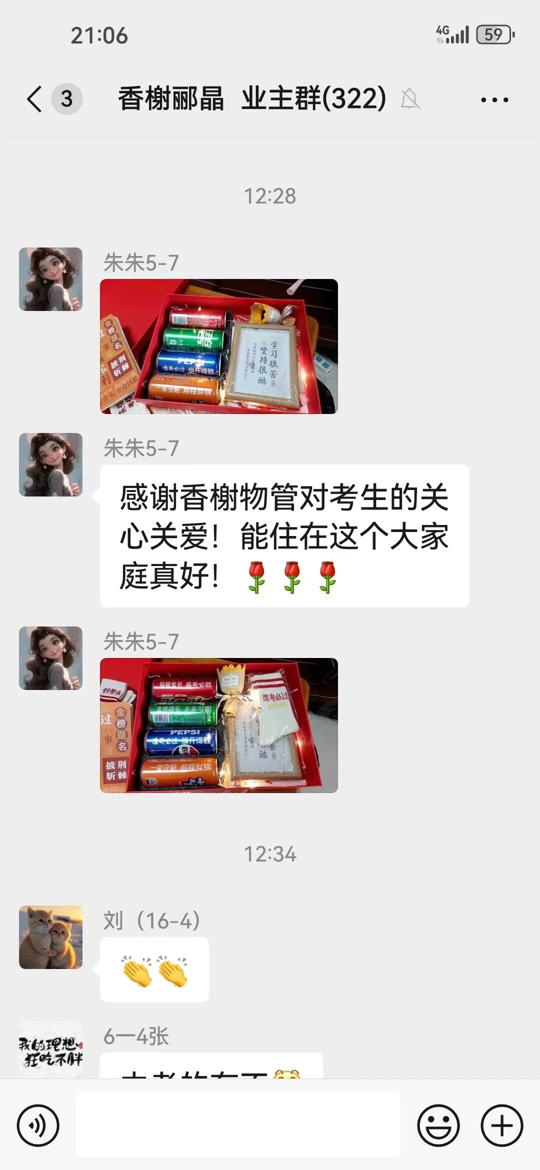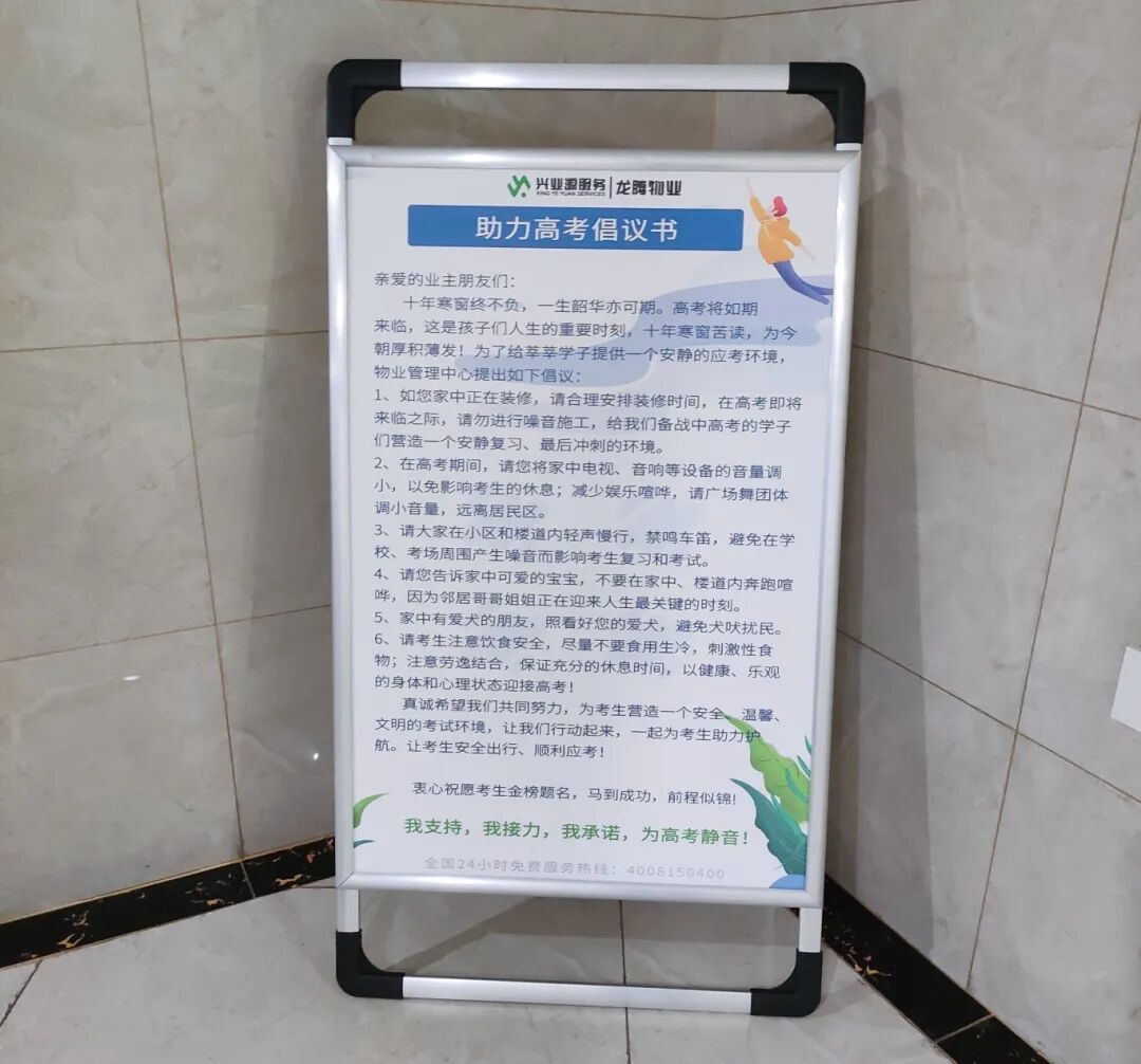 为了营造一个良好的备考环境,兴业源服务率先启动了“静音护航”模式。在高考前夕,积极与广场舞爱好者沟通,暂时停止了广场舞活动,以避免噪音对备考学子们的影响。同时,还与养犬人士协商,加强了对犬只的管理,防止犬吠扰民。此外,还合理安排了社区内的装修时间,尽量避免在备考期间进行噪音较大的装修工程,且加强了对蚊虫的祛除工作。确保高考学子们能够在一个安静的、无噪音的休息和学习环境中备考。