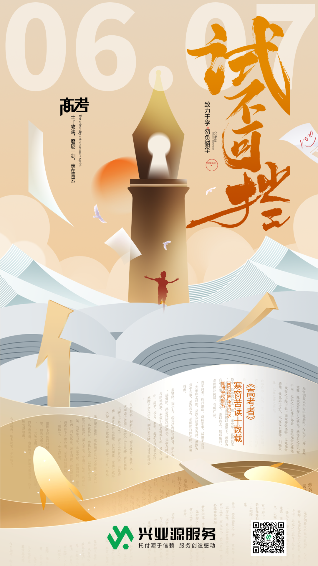 高考只是人生中的一个阶段,而真正的成长和成功需要学子们不断地努力和拼搏。我们相信,在兴业源服务的陪伴下,广大高考学子们一定能够发挥出自己的最佳水平,取得优异的成绩,实现自己的人生梦想。
