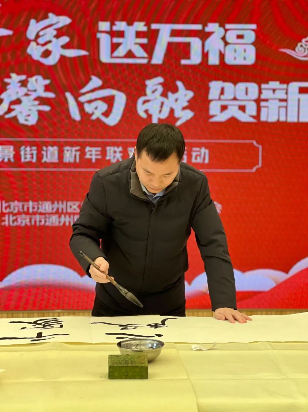 活动现场,北京化成天下公益基金会秘书长,书法协会副会长梁吉超先生在联欢会上写下“文惠千家 心馨向融 ”的大会主题词并进行捐赠,在会后挥毫泼墨为业主们书写寓意吉祥的春联。一幅幅春联,或刚劲有力,或飘逸灵动,饱含着对蛇年的美好期许。业主们拿着心仪的春联,脸上洋溢着幸福的笑容,纷纷表示手写的春联更有年味。除此之外,挥毫泼墨,写下一个个福字,一幅幅美好寓意的春联。