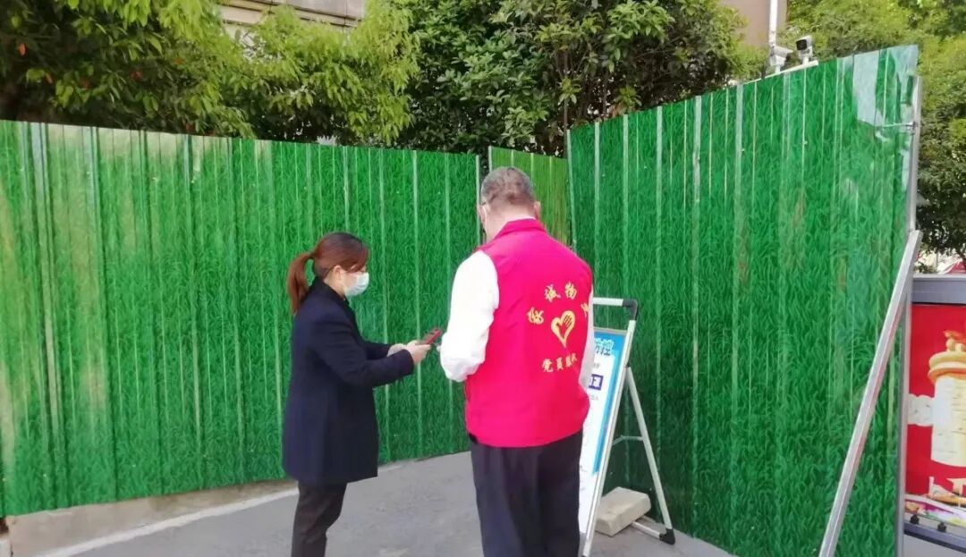 “西门全封闭”一声令下,项目部刘主任便带领工作人员,利用预备好的彩钢瓦,一片一片固定在西门岗道闸两边,为小区搭起一道坚固的绿色屏障。
