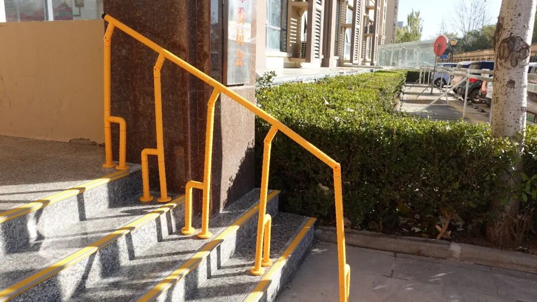 站外,为了方便长者前往服务站,在园区内因地制宜地设置了扶手、坡道等适老通道,确保长者安全出行。