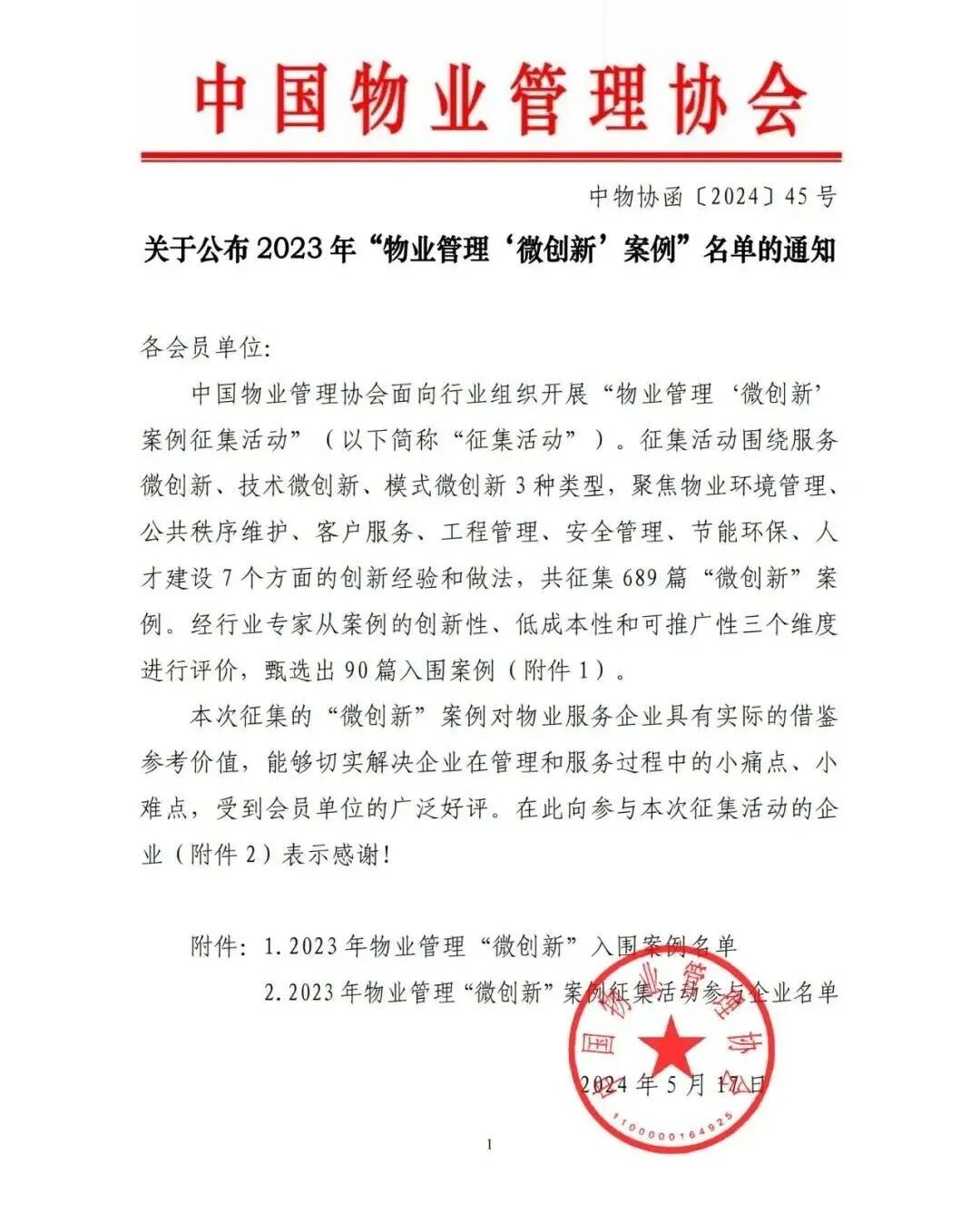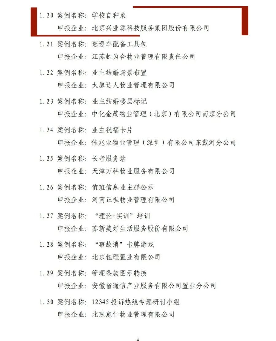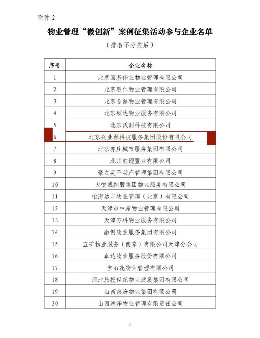 2023年,兴业源服务面向全国区域组织开展物业管理微创新活动,围绕服务创新、技术创新、模式创新,征集到十多个优秀案例,其中兴源高中自种菜案例,经中国物业管理协会行业专家从案例的创新性、低成本性和可推广性三个维度进行评价,从中物协征集的689篇“微创新”案例中脱颖而出,入选2023年物业管理微创新名单。